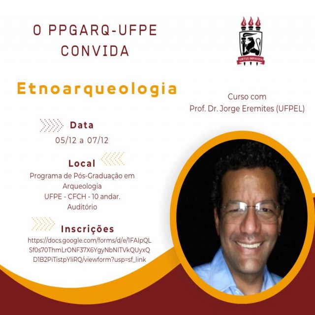 O Programa de Pós-Graduação junto com a Fundação Paranã-buc convidam os estudantes de Graduação e Pós-Graduação para o curso de Etnoarqueologia, a ser ministrado pelo professor Dr. Jorge Eremites Oliveira (UFPEL).